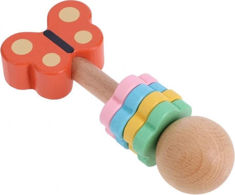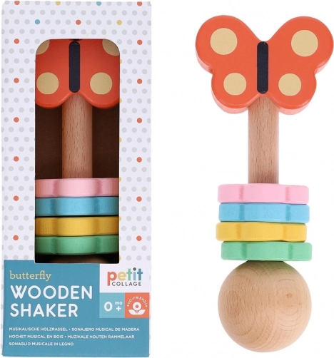 A Petit Collage márka pillangó csörgője finom és színes, ideális társ a legkisebbek számára. Finom rázáskor kellemes hangokat ad ki, amelyek segítik a hallás és a ritmus érzékelését.