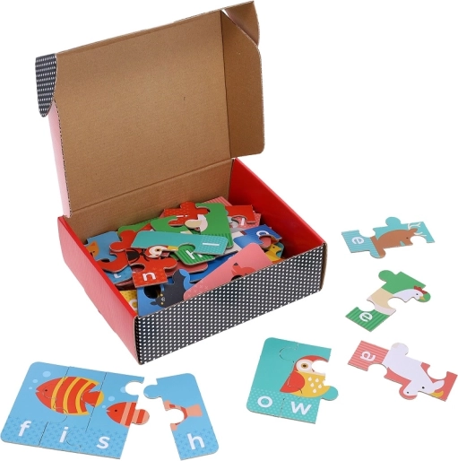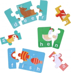 Minden kirakó egy aranyos állatképet kapcsol össze egy 3–4 betűs angol szóval. A speciális elemalakok segítik a helyes megoldást és támogatják az első betűzést.
