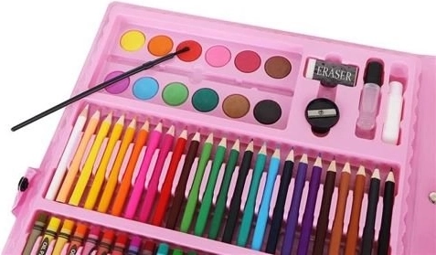 Gazdag választék: 24 színes ceruza, 24 filctoll, 48 zsírkréta, 48 olajpasztell, 12 akvarellfesték és praktikus kiegészítők. Minden a rajzoláshoz, színezéshez és vízfestékkel való festéshez.
