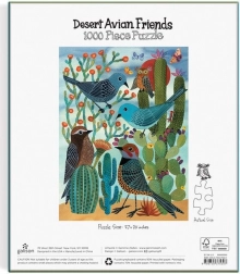 Fedezze fel a napfényes sivatag szépségét Geninne Zlatkis művésznő madármotívumaival díszített, egyedi kirakóval. 1000 precízen vágott darab, matte felületkezelés a hű színekért, környezetbarát anyagok FSC tanúsítvánnyal és erős, újra felhasználható doboz – remek ajándék és öröm az egész családnak.