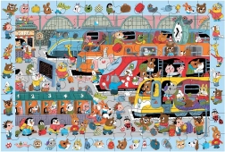 A nyüzsgő pályaudvar jelenetének kirakása után a gyerekek figyelmét teszi próbára, miközben a kép körüli keretben több mint 40 tárgyat kutatnak fel.