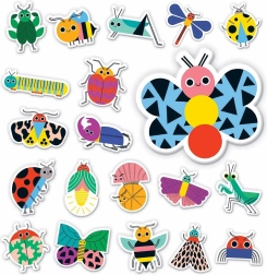 Színes pillangók, méhecskék és katicák ösztönzik a képzelőerőt, a formák és színek tanulását, valamint a finommotorikát.