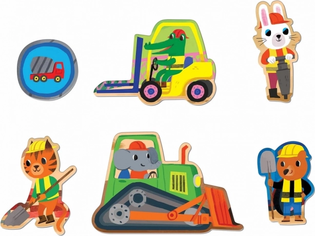 Az építőipari járműveket és munkásokat ábrázoló padlópuzzle fejleszti a finommotorikát, a koncentrációt és a képzelőerőt. A nagy és masszív daraboknak köszönhetően ideális a kisgyerekek kezeihez, és ellenáll a gyakori kirakásnak. A csomag tartalmaz egy mintaképet szerzői információkkal, amely segíti a gyerekeket a kirakásban.