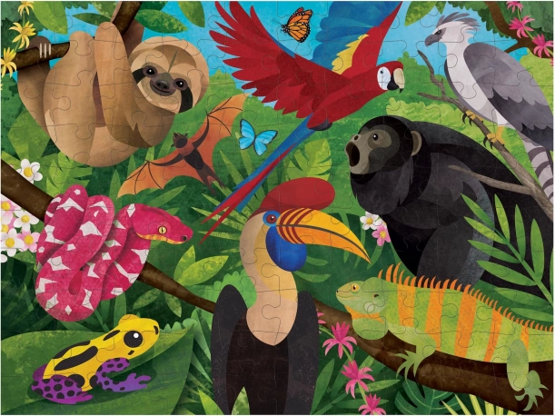 A kirakó az esőerdő életének két különböző jelenetét kínálja, így kétszeres szórakozást és tanulási élményt nyújt.