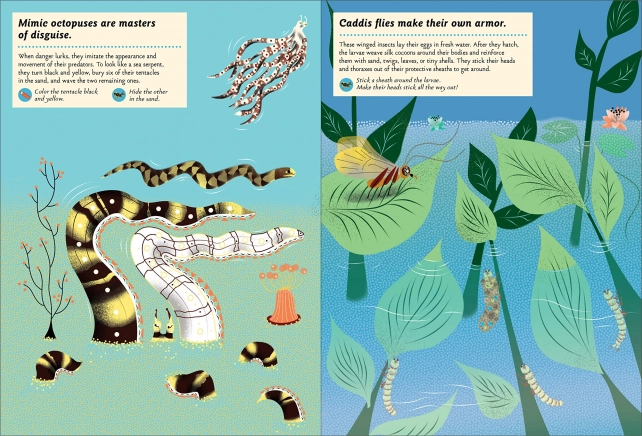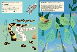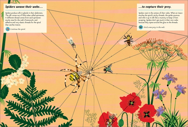 Része a színes illusztrációk sora Clementine Sourdais tollából és sokféle tevékenység – a méhsejt kiegészítésétől a zsákmány pókhálóba helyezéséig. A végén a gyerekek egy rövid kvízben tehetik próbára frissen szerzett tudásukat.