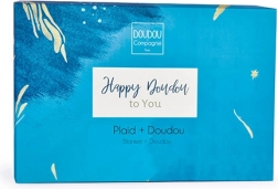 Ajándékcsomag Boldog Nyuszi takaró és kék plüssállat