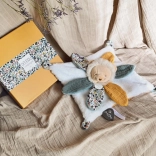 A modern, luxus megjelenésű ajándékcsomagolás tökéletes választás babaszületés ünneplésére, keresztelőre vagy karácsonyi meglepetésnek. Az anyagok gondosan válogatottak és kíméletesek a bababőrhöz, a termék megfelel a szigorú CE szabványoknak, és könnyen tisztítható – 30 °C-on mosható.