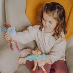 Ismerd meg Tarát – a gyengéd pillangótündért lila ruhában, kék szárnyakkal és stílusos kiegészítőkkel. Puha anyagainak köszönhetően tökéletes bújáshoz és az első játékokhoz a legkisebbeknek. A hímzett arcrészletek biztonságot nyújtanak apró alkatrészek nélkül.
