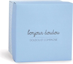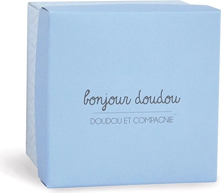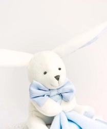 Ez az ajándékszett egy fehér nyuszit tartalmaz puha, kék rongyival, gyönyörű dobozba helyezve, készen az ajándékozásra. A pihe-puha anyag biztonságérzetet és kényelmet nyújt a babának, míg a könnyű kis takaró jól illik a pici kezekbe.