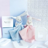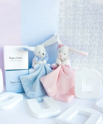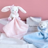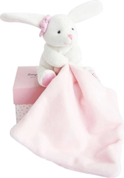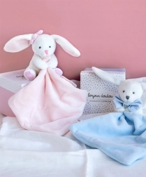 Ez a bájos nyuszi egy elegáns ajándékdobozban elengedhetetlen minden újszülött számára. Fehér kivitelben rózsaszín muchlákkal a nyuszi rendkívül puha és gyorsan a gyermeked legjobb társává válik. A kis takaró a mancsban könnyen megfogható muchlák.