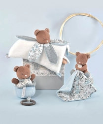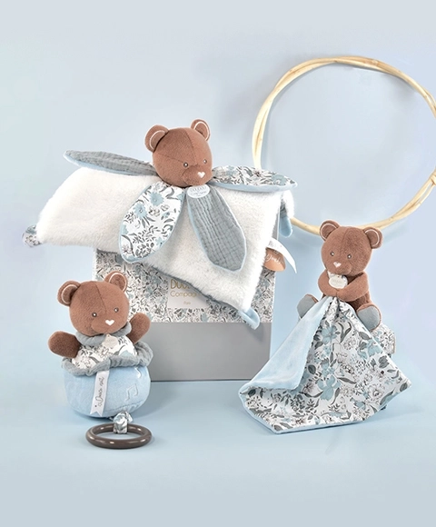Doudou plüssmackó takaróval ideális társ a babának a születéstől kezdve. Hozza a lágyságot, kényelmet és ölelést, ami fejleszti a gyerekek érzékszerveit és kíváncsiságát.