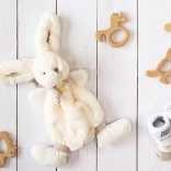 A nyuszi krémszíne és bézs fülei a modern ajándékdoboz designnal együtt ideális ajándékot alkotnak minden különleges alkalomra: