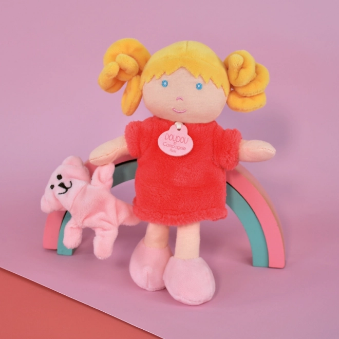 Panenka Miss Coral ragyogó narancssárga ruhában nagyszerű barát a kislányod számára. Hímzett szemei, orra és szája van, és egy kis plüss mackót hoz magával.
