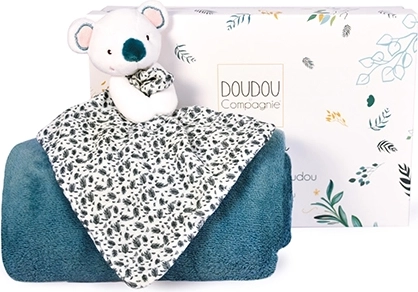Ez az elegáns ajándékszett egy puha, koala alakú szundikendőt és egy 70×100 cm-es, univerzális plédet egyesít. A finom, légáteresztő anyagok és a DOUDOU Compagnie gondos kivitelezése a babának biztonságérzetet és megnyugvást nyújt otthon, a babakocsiban és utazás közben is.