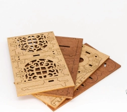 A doboz minőségi természetes fából készül, részletgazdag lézervágásokkal, megjelenése egyszerre rusztikus és elegáns. Remek választás nem hétköznapi ajándékcsomagolásnak, újévi dekorációnak vagy kis meglepetésnek rejtvény- és szabadulószoba-rajongóknak.