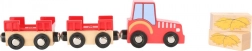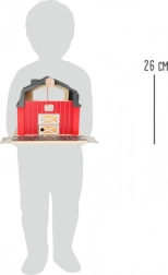 Ez a SMALL FOOT fa tanya ideális játékkészlet 3 éves kortól. Valósághű elemeket kínál – két szárnyú kapuval ellátott pajta, működő daru a széna emeleti tárolásához és mágneses bálák, amelyeket a mellékelt utánfutós traktorral könnyű felemelni és szállítani. A készlethez tartozik még egy ló, tehén, malacka és hat darab karámelem.