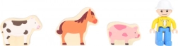 A 100% FSC fa és műanyag masszív kombinációjának köszönhetően a szett tartós és biztonságos. A tanyával való játék természetes módon fejleszti a képzelőerőt, az ügyességet, a finommotorikát és a kommunikációt. Az egyszerű, játékos dizájn felébreszti a kíváncsiságot és a természet szeretetét.