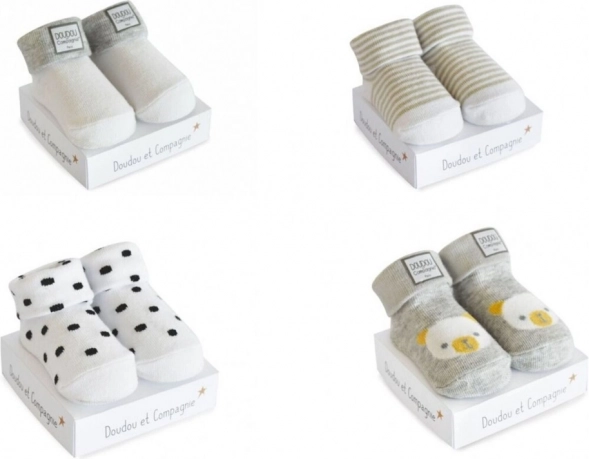 Kedves és praktikus ajándékot keres újszülött számára? A DOUDOU ajándékszett univerzális babazoknit kínál 0–6 hónapos korig. A kiegyensúlyozott pamut, poliészter és elasztán keveréknek köszönhetően a zokni kíméletes az érzékeny bőrhöz, ugyanakkor tartja a formáját és jól illeszkedik a kis lábacskára.
