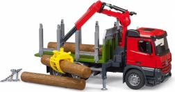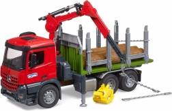 A Bruder fa szállítókocsi forgó daruval és megfogóval van felszerelve, ami lehetővé teszi a könnyű és hatékony rönkszállítást és -kirakodást.