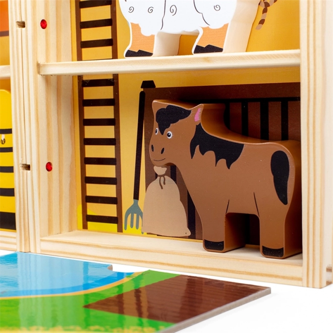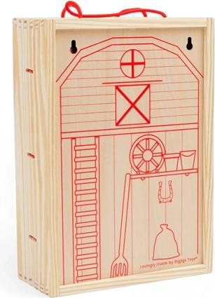 Ez a stílusos, fából készült farm pillanatok alatt teljes játékszínterré nyílik, játék után pedig minden könnyen visszakerül a dobozba. Utazáshoz ideális – kompakt, tartós, és bármikor, bárhol játékra kész. A minőségi tömör fa és a sima élek biztonságos játékot biztosítanak a legkisebbeknek.
