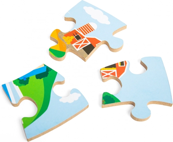 A sima és masszív fa darabok könnyen illeszthetők, fejlesztik a finommotorikát, és bírják a mindennapos játékot.