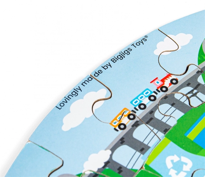 Fedezze fel a fenntarthatóság játékos útját a BIGJIGS TOYS kör alakú fa puzzle-jével, az Újrahasznosítással. A színes illusztrációk szemléletesen mutatják meg a gyerekeknek, mit és hogyan kell helyesen szelektálni, és miért fontos az újrahasznosítás. A puzzle fejleszti a türelmet, a logikus gondolkodást és a finommotorikát, 3 éves kortól ideális.