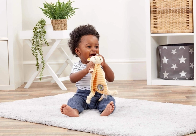 Lapos, „kendős” teste a legapróbb kezek számára is könnyen megfogható, könnyű kialakítása pedig tökéletes a kiságyba, a babakocsiba és útközben is. A praktikus kézi mosás megkönnyíti a tisztítást és meghosszabbítja a kedvenc játék élettartamát.