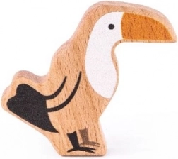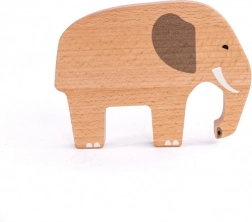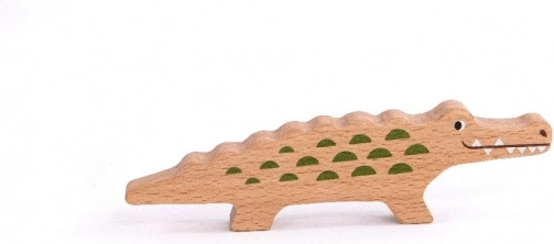 A készlet valósághűen stilizált figurákat tartalmaz: elefántot, gorillát, zebrát, oroszlánt, tigrist, orrszarvút, kígyót, zsiráfot, krokodilt, tukánt és majmot. Minden darab kézzel finiselve, minimalista kialakítással készül, amely kiemeli a fa természetes erezetét. A simára csiszolt éleknek és a masszív felépítésnek köszönhetően a játékok kellemes tapintásúak és bírják a mindennapos használatot.