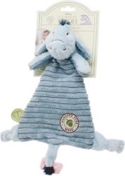 Ez a plüss alvókendő a kedvelt Füles figurával megnyugvást, biztonságérzetet és melengető ölelést nyújt a gyermekeknek. A puha, bordázott, tapintásra gazdagon texturált anyag támogatja a szenzoros játékot és a finommotorika fejlődését, miközben a hímzett részletek kíméletesek és biztonságosak még a legkisebb babák számára is.