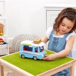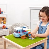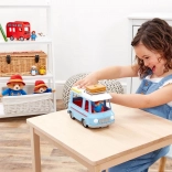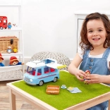 A készlet piknik kiegészítőket tartalmaz, például egy plédet és egy bőröndöt szendviccsel, amelyek még élethűbbé teszik a játékélményt.