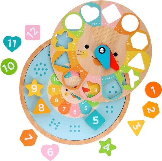Ezek a gyönyörűen kidolgozott fa órák interaktív és szórakoztató módot kínálnak a gyerekeknek az idő és a számok alapjainak elsajátítására. Az óra tartalma: