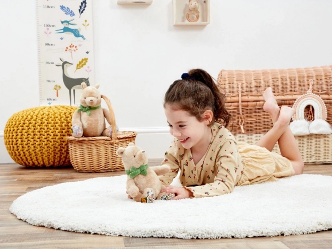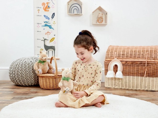 A mackót a bolygóra való tekintettel tervezték – a felhasznált anyagok fenntarthatóak, a töltet újrahasznosított műanyag palackokból származó szálakból áll. A stílusos zöld sál masnival és a finom erdei minta a tappancsokon időtálló megjelenést kölcsönöz, amely a gyerekeknek és a szülőknek egyaránt tetszik. Születéstől alkalmas, kiváló újszülött-ajándék.