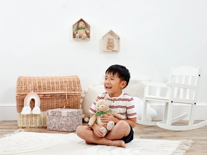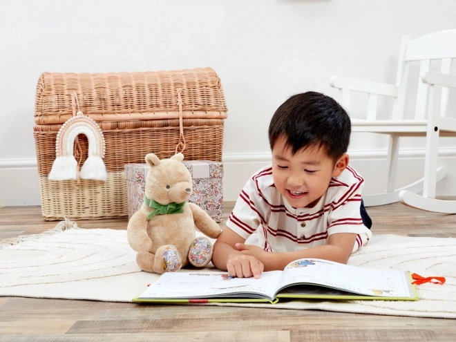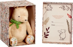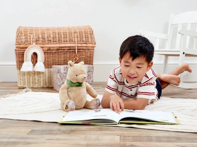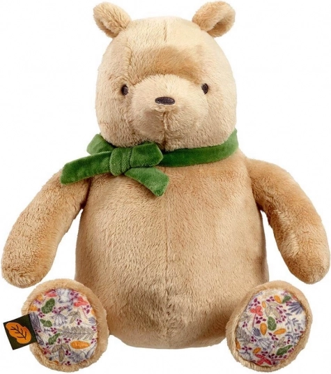 A 25 cm-es, aranyos plüss Micimackó extra puha és fenntartható anyagokból készült, újrahasznosított töltettel a biztonságos és kíméletes ölelgetésért. A stílusos zöld masni és a virágmintás tappancsok különleges bájt kölcsönöznek a játéknak. Ideális újszülött ajándéknak, ajándékdobozban szállítva, személyes üzenetnek fenntartott hellyel.