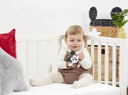 A halk, megnyugtató hang felkelti a figyelmet, és támogatja a hallás, valamint a kéz–szem koordináció fejlődését.