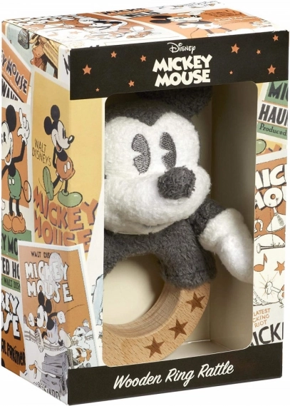 Fedezze fel a babák tökéletes első játékát: csörgő az ikonikus MICKEY MOUSE figurával egy masszív bükkfa gyűrűn, csillagmintás díszítéssel. A puha plüssnek és a sima fának köszönhetően biztonságos, kellemes tapintású, és támogatja a korai készségek fejlődését.