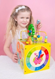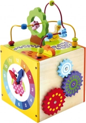 A Bino márka multifunkciós motoros kockája minőségi, fából készült játék a legkisebbeknek, amely fejleszti a finommotorikát, a logikus gondolkodást és a koncentrációt. Minden oldala más-más tevékenységet kínál, beleértve a formák bedobását és behelyezését. Minőségi fából készült, ártalmatlan festékekkel kezelve, amelyek megfelelnek az EU szabványainak.