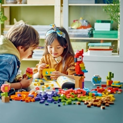 Ez az univerzális készlet ikonikus kockákat kínál sokféle színben, köztük a legendás 2×4-es elemet. A csomag része egy áttekinthető füzet szórakoztató modellek útmutatóival és tippekkel, hogyan inspiráld a gyerekeket a saját alkotásaikra. A digitális útmutatók a LEGO Builder alkalmazásban is elérhetők.