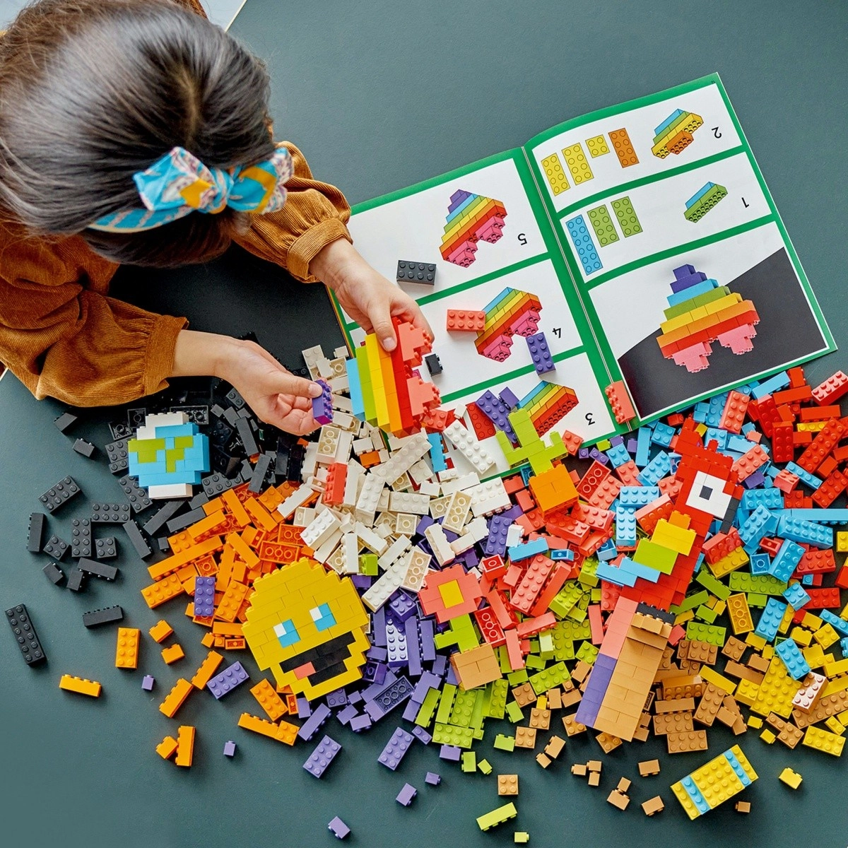 Áttekinthető füzet és digitális utasítások segítenek autó, földgömb, virág, papagáj, emoji és további mókás modellek megépítésében.