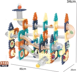 Fedezd fel a szórakozás világát ezzel a golyópálya-építő készlettel, amely 110 db különböző elemet kínál dinamikus pályák és térbeli jelenetek építéséhez. A gyerekek kísérletezhetnek a formákkal és útvonalakkal, egyedi konstrukciókat építhetnek, és golyóversenyeket rendezhetnek vagy dominózhatnak.