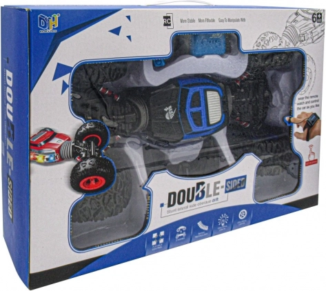 Ez a strapabíró RC autó a terepkalandokra született. A dupla motornak és a nagy kerekeknek köszönhetően könnyedén veszi az egyenetlenségeket, a hegyi utakat és a sarat. Az intuitív órás kézmozdulat-vezérlés új dimenziót ad a szórakozásnak – a kanyarodás, az előre/hátra haladás és az üzemmódváltás egyetlen kézmozdulattal megoldható.