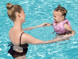 Könnyű gyermek úszómellény a Bestway MINNIE motívummal, amely segít az 1–3 éves (11–19 kg) gyerekeknek magabiztosan mozogni a vízben. Habbetéttel, elöl biztonsági zárral ellátott cipzárral és állítható lábközti pánttal rendelkezik a felcsúszás ellen. A tartós textil UPF 50+ védelemmel nem fakul, a mellény nem felfújható, és könnyen felvehető. Úszástanulást segítő eszköz, kizárólag felnőtt felügyelete mellett.