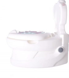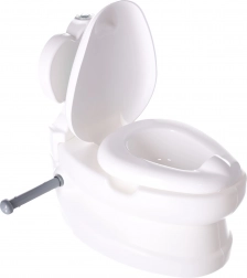 Az átgondolt részletek, mint a zárható fedél és a WC-t utánzó elemek a felnőttek utánzására motiválnak. Kompakt mérete minden fürdőszobába vagy gyerekszobába illik, könnyen hordozható és tisztítható.