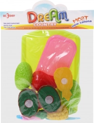 Ez a gyümölcsvágó készlet ideális azoknak a gyerekeknek, akik szeretnek a konyhában felnőtteket utánozni. Az elemek a gyerekek kezéhez igazodnak, a biztonságos „kés” pedig lehetővé teszi a tépőzárral vagy pálcikákkal összekapcsolt gyümölcsdarabok szeletelését. A gyermek valósághű játékélményt kap, miközben a szülők nyugodtak maradhatnak.