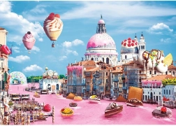 Ennek a képnek az összeállítása nem csak relaxációt nyújt, hanem gyönyörködtető kilátást is ad a velencei szépséges tájra, tele csemegékkel.