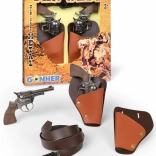 Élvezd a western hangulatot ezzel a stílusos készlettel – két fém revolver tokkal az autentikus megjelenésért. Tökéletes seriffes vagy pisztolyhősös játékhoz, gyerekeknek is biztonságos, mivel nem használnak lőszert, és csak hangot adnak ki a valósághű hatásért.