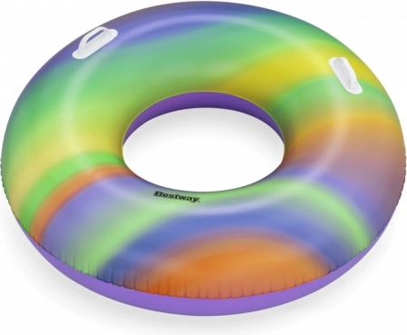 A BESTWAY szivárványos úszógumi remek választás vízi szórakozáshoz. A 119 cm-es nagy átmérő kényelmes alátámasztást és stabilitást nyújt, míg a két fogantyú megkönnyíti a kapaszkodást ugráláskor és a nyugodt pihenést a víz felszínén. A tartós PVC anyag bírja a mindennapos nyári használatot, az élénk színek pedig minden fürdőhelyen magukra vonják a figyelmet.