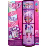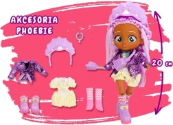 Phoebie a lila szín szerelmese, lila haja van, sárga kezeslábast visel lilával és fémes dzsekivel, bakancsot és magas zoknit! Kiegészítői a lila kézitáska, dinoszaurusz ihlette fejpánt és az egyedi BFF nyaklánc.