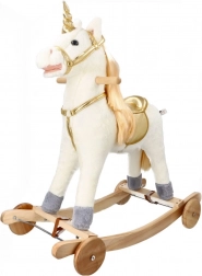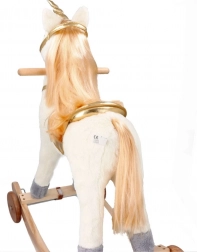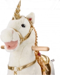 Fedezze fel a lovaglás izgalmát ezen a gyönyörű arany egyszarvún. A puha és kellemes plüss kényelmes és szórakoztató élményeket kínál a gyerekek számára. Stabil fa szerkezet és elegáns aranyozott elemek varázslatos hangulatot hoznak minden játékba.