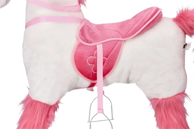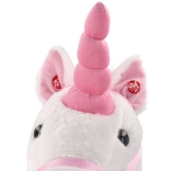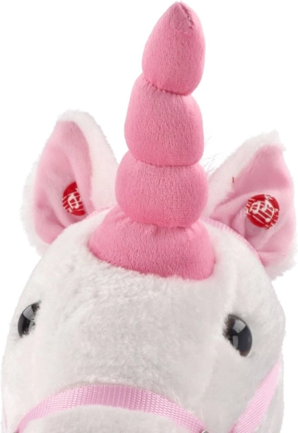 Az egyszarvú puha, plüss felülettel rendelkezik, fehér testtel és rózsaszín részletekkel, ami csodálatos kiegészítőként szolgál a gyermekszobában vagy játékteremben.