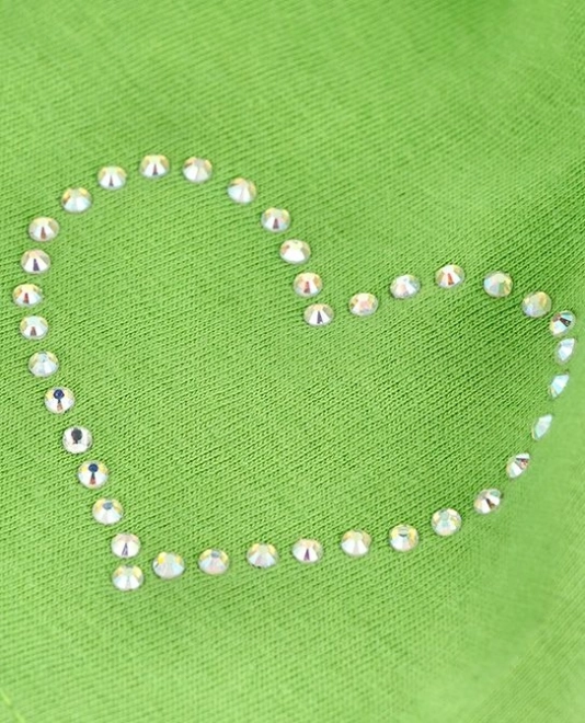 A motívumot elég a tiszta, száraz textilre helyezni, majd óvatosan felvasalni egy védőkendőn keresztül. Helyes felvasalás után erősen tapad, és ellenáll a kézi, illetve kímélő gépi mosásnak 40 °C-ig – mindig kifordítva mossa, hogy megőrizze a kövek csillogását.
